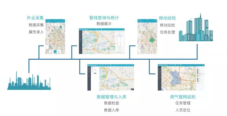 燃?xì)夤芫W(wǎng)地理信息系統(tǒng)集外業(yè)采集、數(shù)據(jù)更新入庫、管網(wǎng)資產(chǎn)查詢統(tǒng)計(jì)、管網(wǎng)巡檢及移動(dòng)辦公等系列軟件產(chǎn)品于一體,系統(tǒng)應(yīng)用覆蓋燃?xì)夤芫W(wǎng)內(nèi)外業(yè)各環(huán)節(jié),可實(shí)現(xiàn)燃?xì)夤芫W(wǎng)精細(xì)化、可視化、智能化生產(chǎn)運(yùn)營。