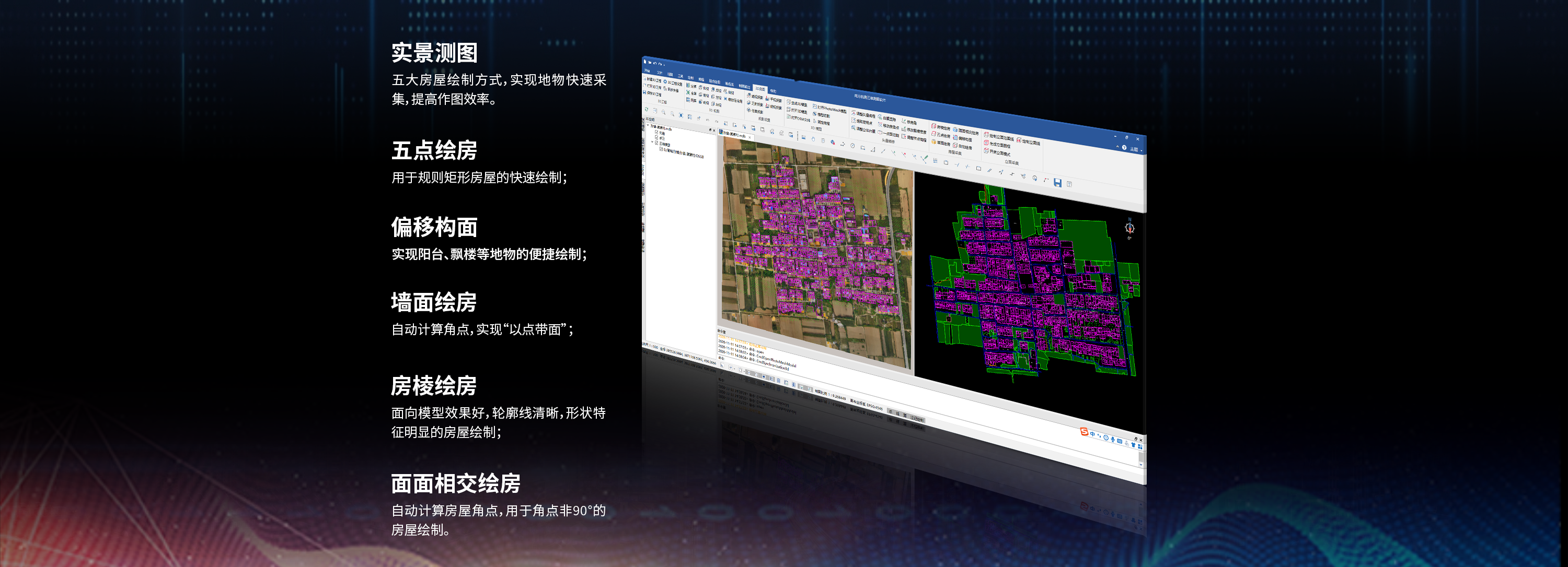 • 地物快速采集:提供不同類型地物快速采集方法和策略,提高用戶作圖效率