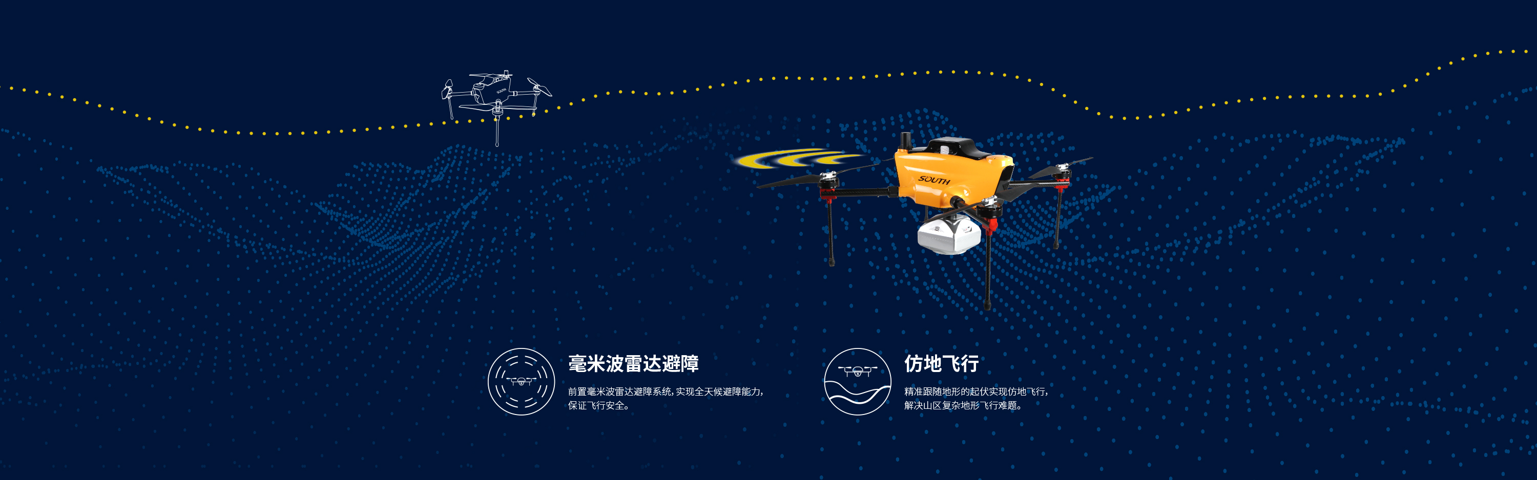 配合地面站軟件和激光避障系統(tǒng),可精準跟隨地形的起伏實現(xiàn)仿地飛行,解決山區(qū)復雜地形飛行難題。