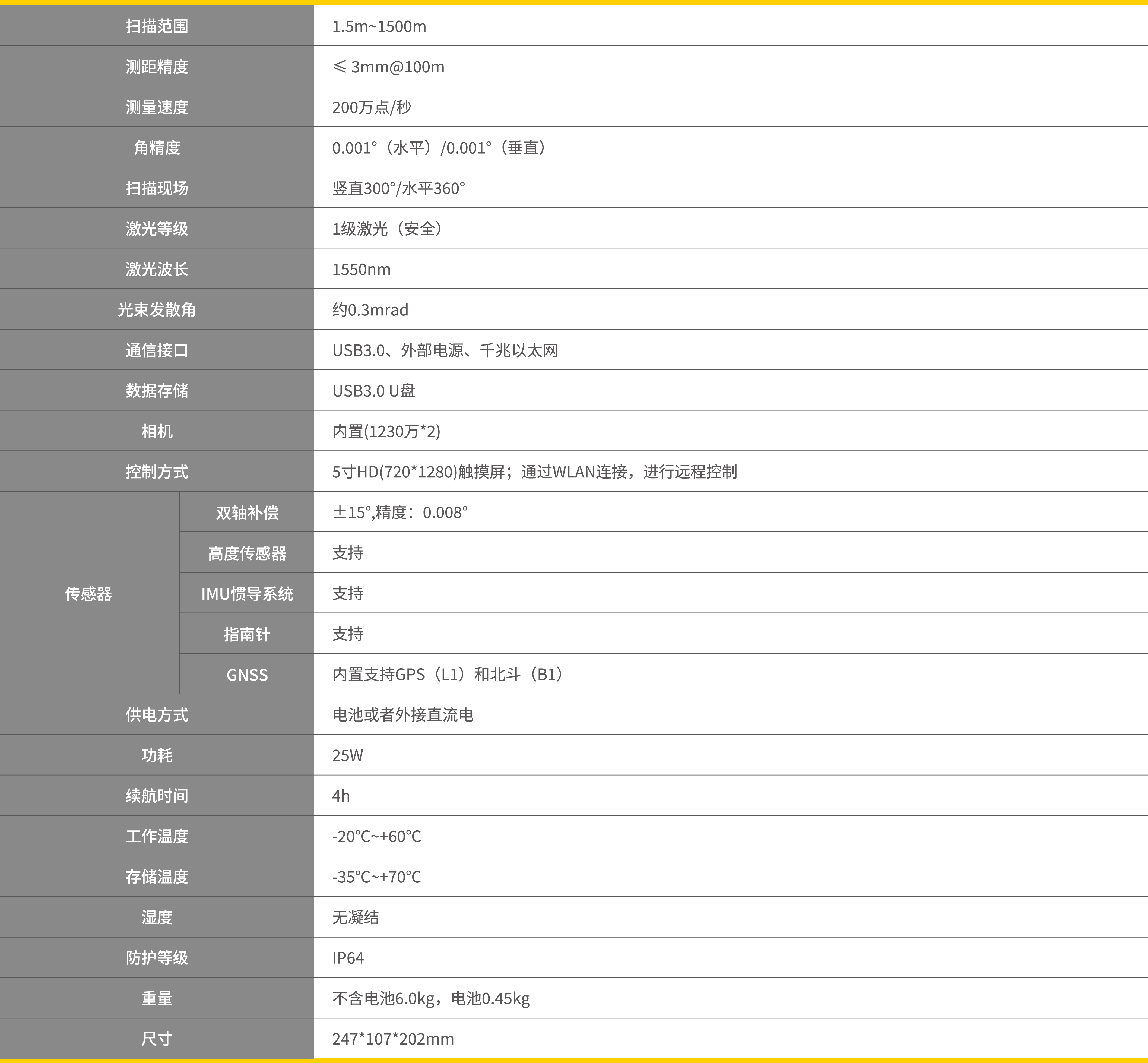 測程1500m,測量速度可達(dá)200萬點/秒,測距精度3mm±100m。