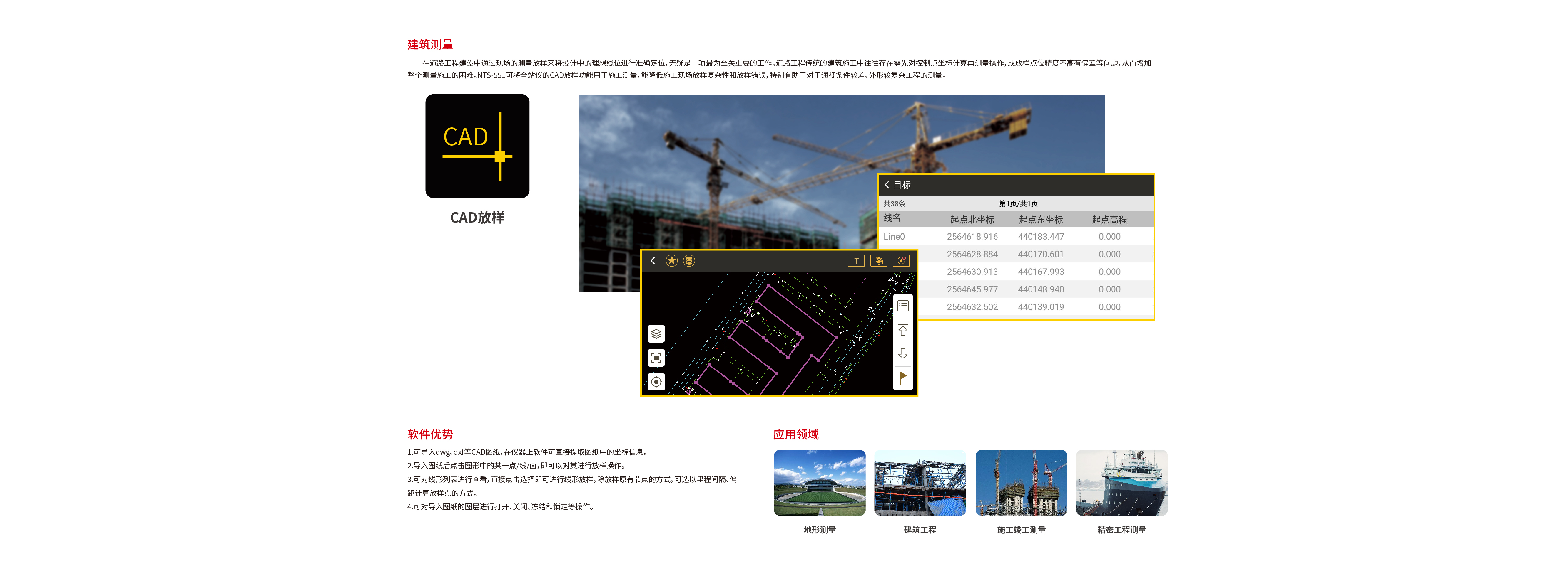 NTS-551R10國產(chǎn)高精度智能全站儀,依托南方二十多年光電儀器生產(chǎn)制造經(jīng)驗,順應(yīng)時代發(fā)展,滿足新基建要求,兼顧1″高精度的同時搭配智能安卓操作系統(tǒng)讓測量更便捷,更高效。并且南方龐大的軟件生態(tài)賦予NTS-551更廣泛的應(yīng)用,讓其在各種領(lǐng)域真正開啟1″智能新時代。