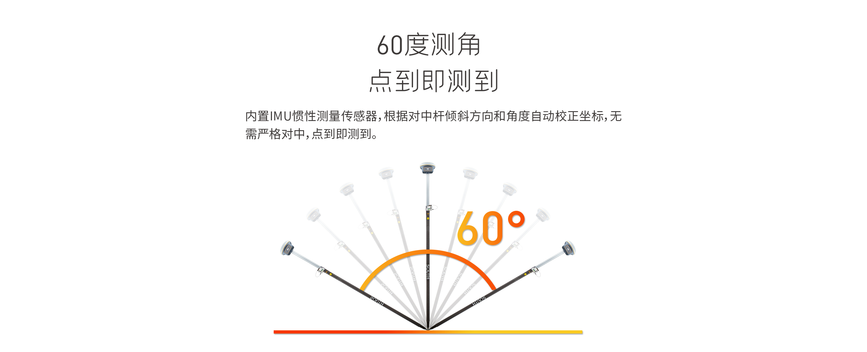 慣導(dǎo) | 慣導(dǎo)傾斜測(cè)量 | 內(nèi)置IMU慣性測(cè)量傳感器,支持慣導(dǎo)傾斜測(cè)量功能根據(jù)對(duì)中桿傾斜方向和角度自動(dòng)校正坐標(biāo)。 |